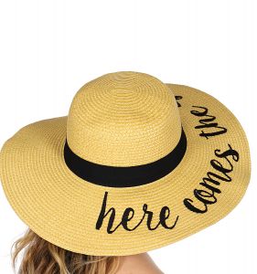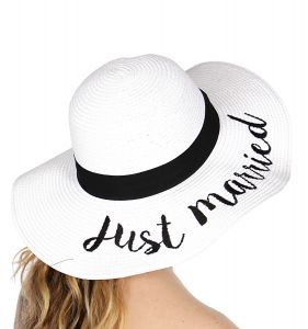Z08 Embroidery lettering wide brim Sun hat 17-24, JUST.MARRIED