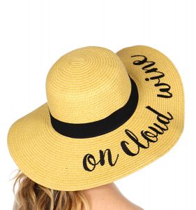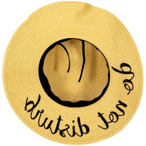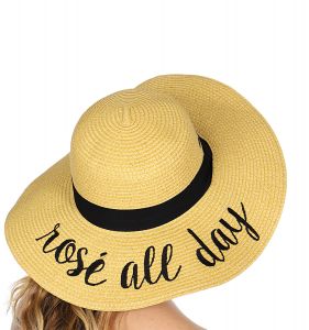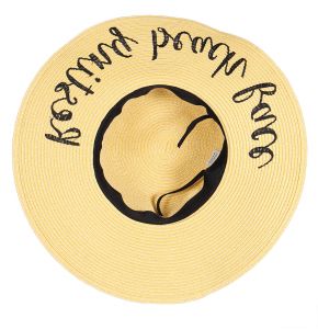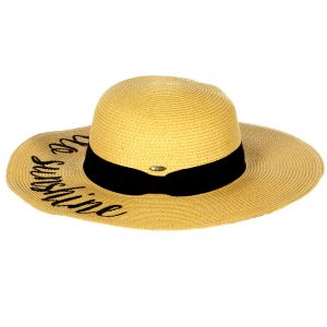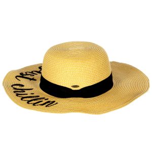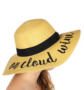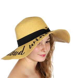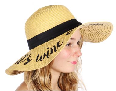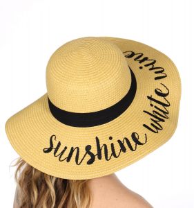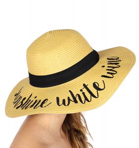 Z08 Embroidery lettering wide brim Sun hat 17-24, SUNSHINE.WHITE.WINE