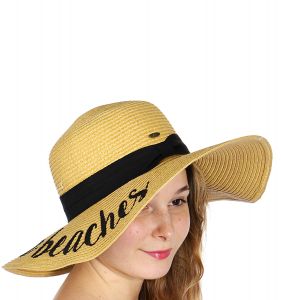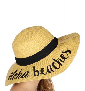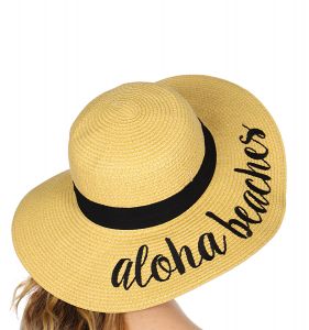 Z08 Embroidery lettering wide brim Sun hat 9-16, ALOHA.BEACHES