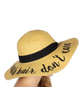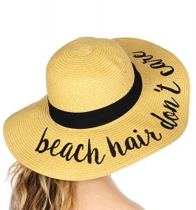 Z08 Embroidery lettering wide brim Sun hat 17-24, BEACH.HAIR.DON'T.CARE