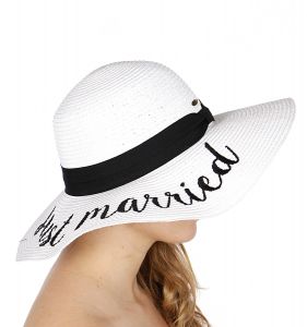 Z08 Embroidery lettering wide brim Sun hat 17-24, JUST.MARRIED.WHITE