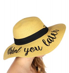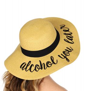 Z08 Embroidery lettering wide brim Sun hat 17-24, ALCOHOL.YOU.LATER