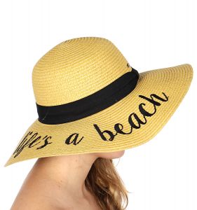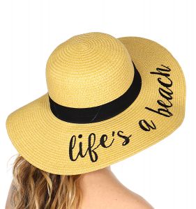 Z08 Embroidery lettering wide brim Sun hat 17-24, LIFE'S.A.BEACH