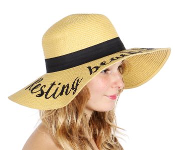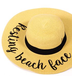 Z08 Embroidery lettering wide brim Sun hat 9-16, RESTING.BEACH.FACE