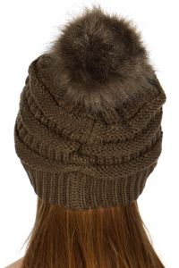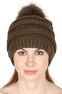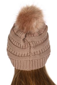 V00 C.C Classic Matching Fur Pom knit beanie Hat, Taupe