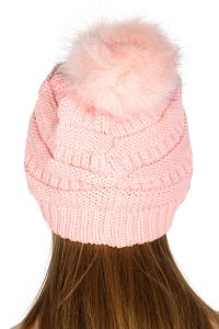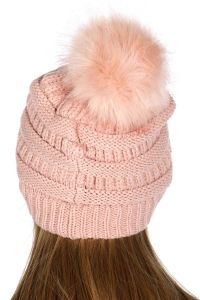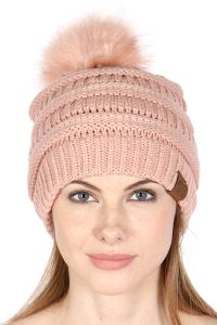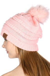 V00 C.C Classic Matching Fur Pom knit beanie Hat, Pale.Pink