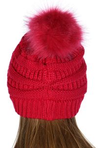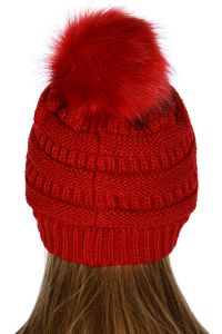 V00 C.C Classic Matching Fur Pom knit beanie Hat, Red