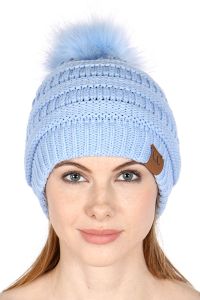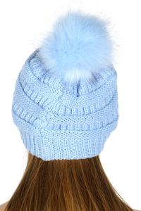 V00 C.C Classic Matching Fur Pom knit beanie Hat, Pale.Blue