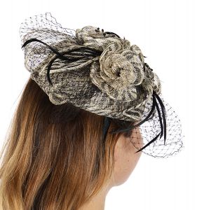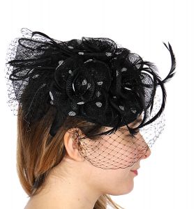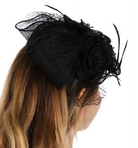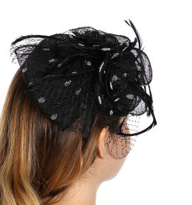 Z10 Sinamy polka dot rose fascinator Blk Dot