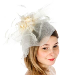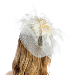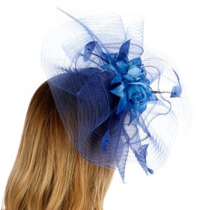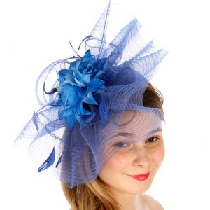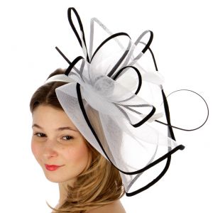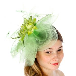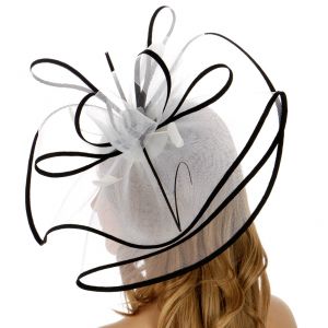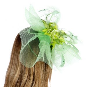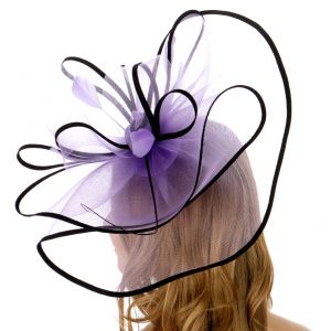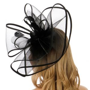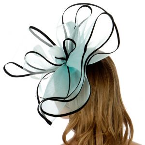 Z73 Swirl black trim leaves feather fascinator Aqua