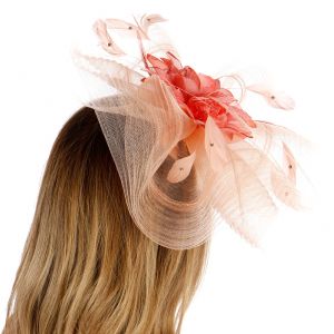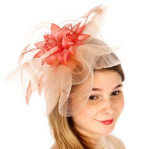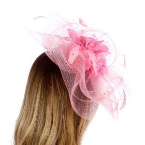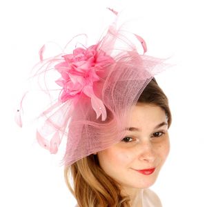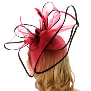 Z73 Swirl black trim leaves feather fascinator Raspberry