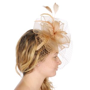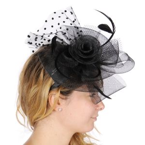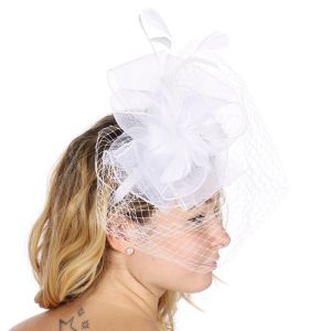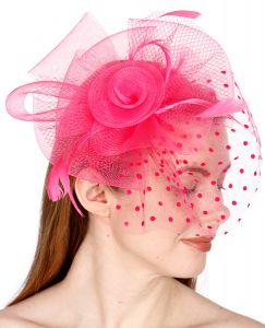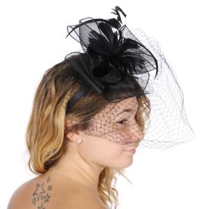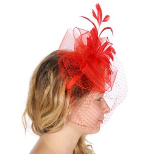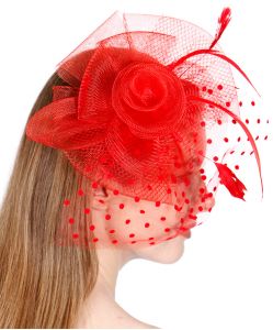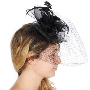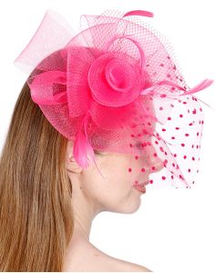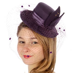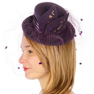 V31BX0 Leaves wool felt veil cocktail hat Purple