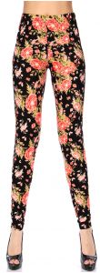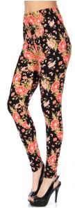 Q07B New Mix full bloom rose print softbrush leggings PLUS SIZE