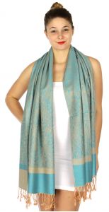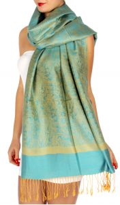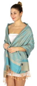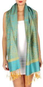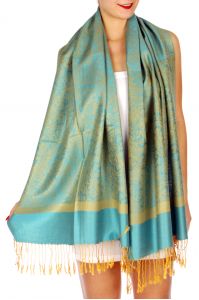 SERENITA Whole Jacquard Pashmina 45 Gold Aqua Blue