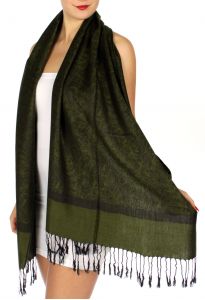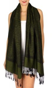 SERENITA Whole Jacquard Pashmina 32 Dark Green