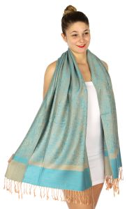 SERENITA Whole Jacquard Pashmina 34 Blue Turquoise
