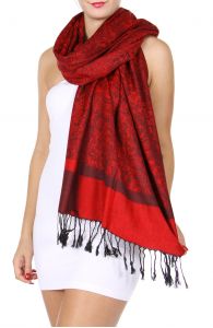 SERENITA Whole Jacquard Pashmina 35 Black Red