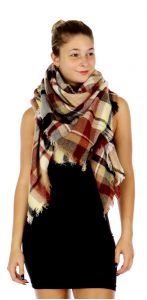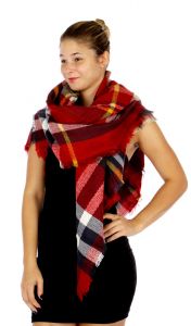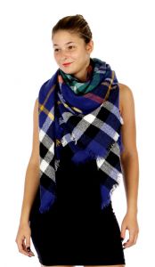 O06D Colorful Plaid Woven Blanket Scarf CH4